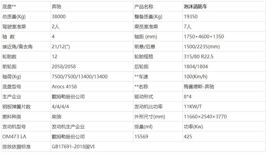 ——— 奔馳18噸泡沫消防車 ———