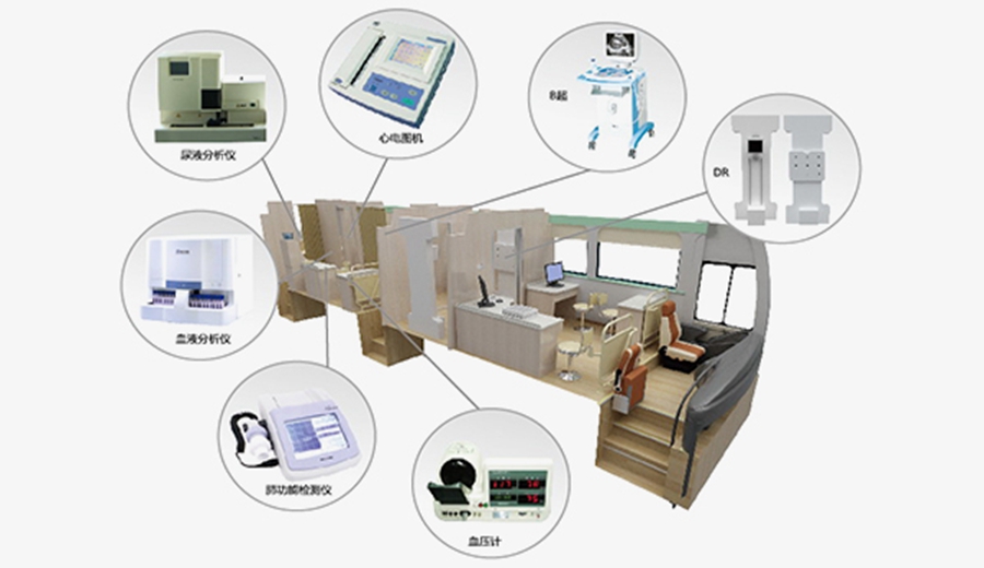 | DR、心電、B超、婦科、生化、電測(cè)聽、核算檢測(cè)車 |